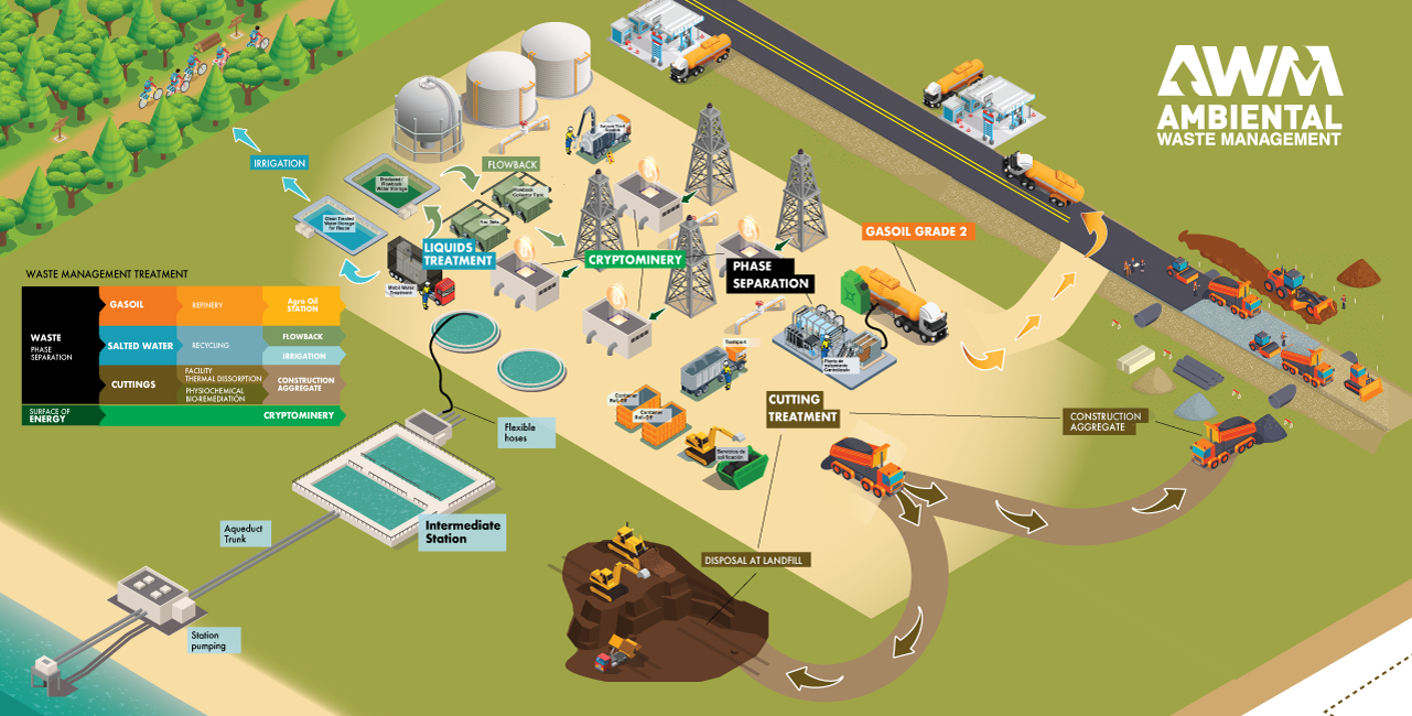 Ambiental Waste Management takes care of all the cycle, from free E&P waste disposal to remediation. We count on an integrated network of waste disposal facilities and human resources which provides superior access to safe and enviroamental friendly services for your oil fields, both on site and within our treatment installations.
